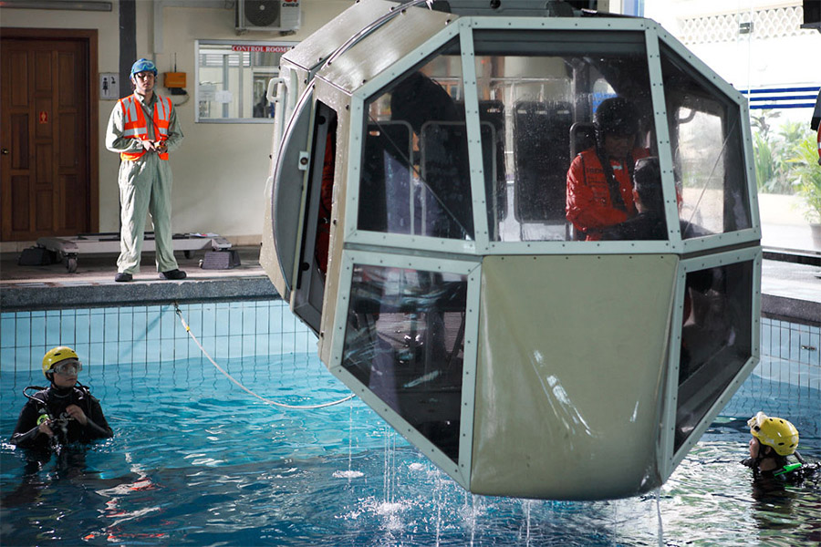 The integrated mooring station includes a forward mooring station, chain locker, paint store, bosun store, bunker station, oily water separator, tank for confined space training and a log lashing station. It is connected with the existing facility, which includes the gangway and pilot ladder and swimming pool with lifeboat and life rafts, to do the Basic Safety Training, PSCRB, Sea Survival, and many other training courses. The mooring training provided includes safe mooring operation, maintenance and inspection of mooring ropes, accident prevention during mooring operation, maintenance of mooring equipment, anchoring operation, emergency towing, chain locker inspection and maintenance, and communication and teamwork during mooring operation.
